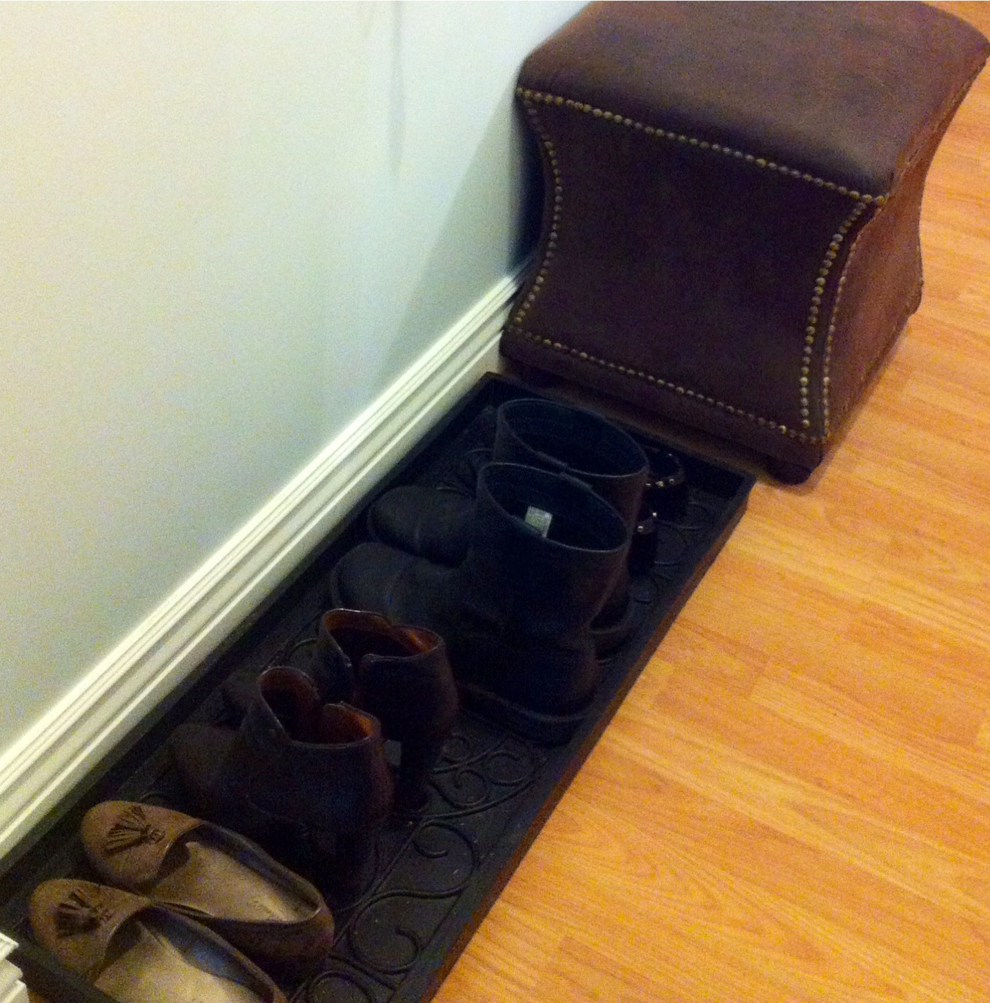 The owls are HG finds, back in the fall. The shoe tray is from Ballard Designs and the little ottoman is another thrifty find, it was about $15 at the thrift shop.